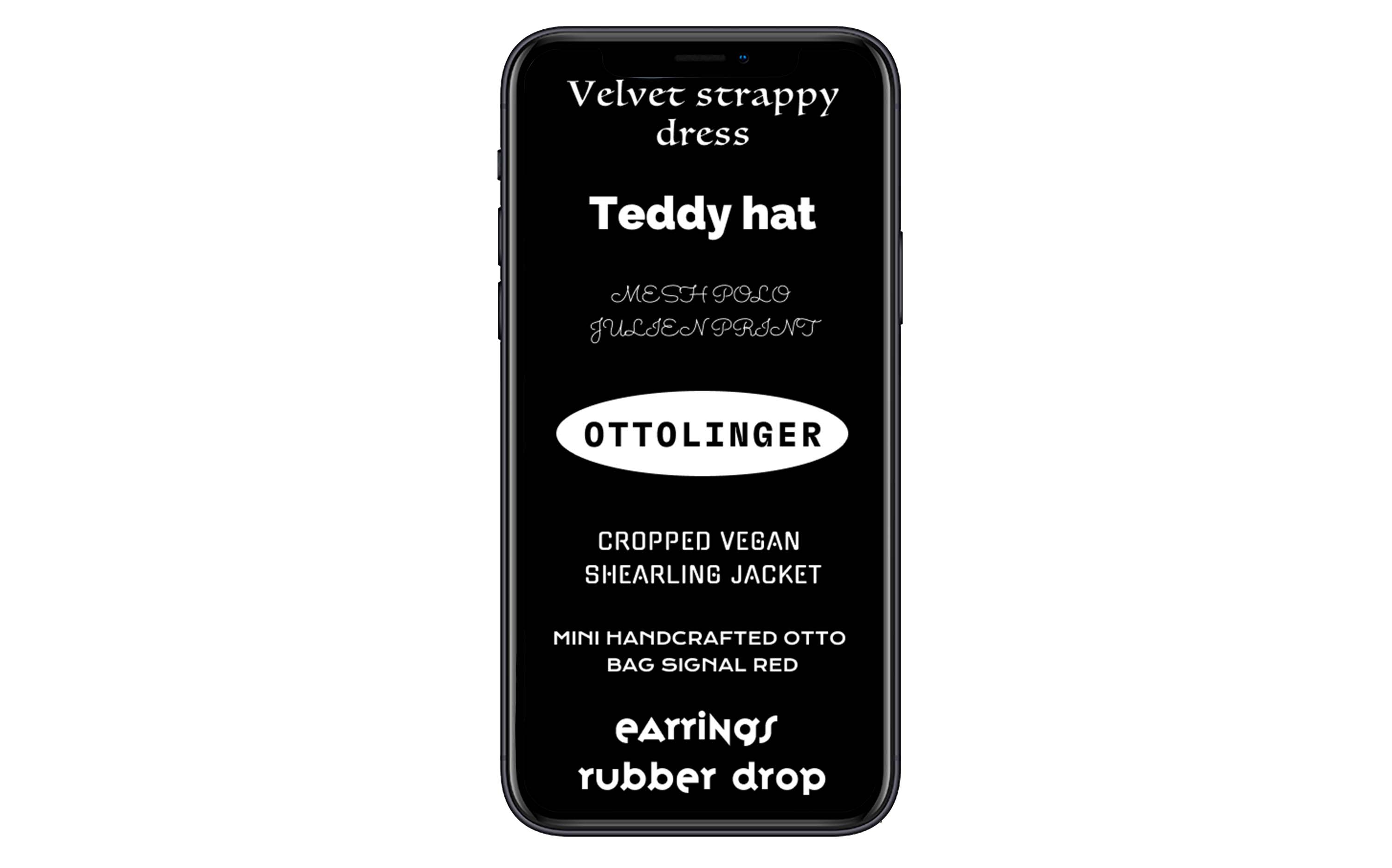 Im Webdesign-Modul haben wir eine digitale Plattform für ein Schweizer Modelabel gestaltet. Ich habe jedem Kleidungsstück eine Schrift zugeteilt. Die Besucher*innen sollen soll über die verschiedenen Schriftmischungen einen Eindruck der Kleidungsstücke gewinnen. Zudem hat jede Unterseite den zugeteilten Schrifttyp, was der Webseite einen eigenen Charakter verleiht.